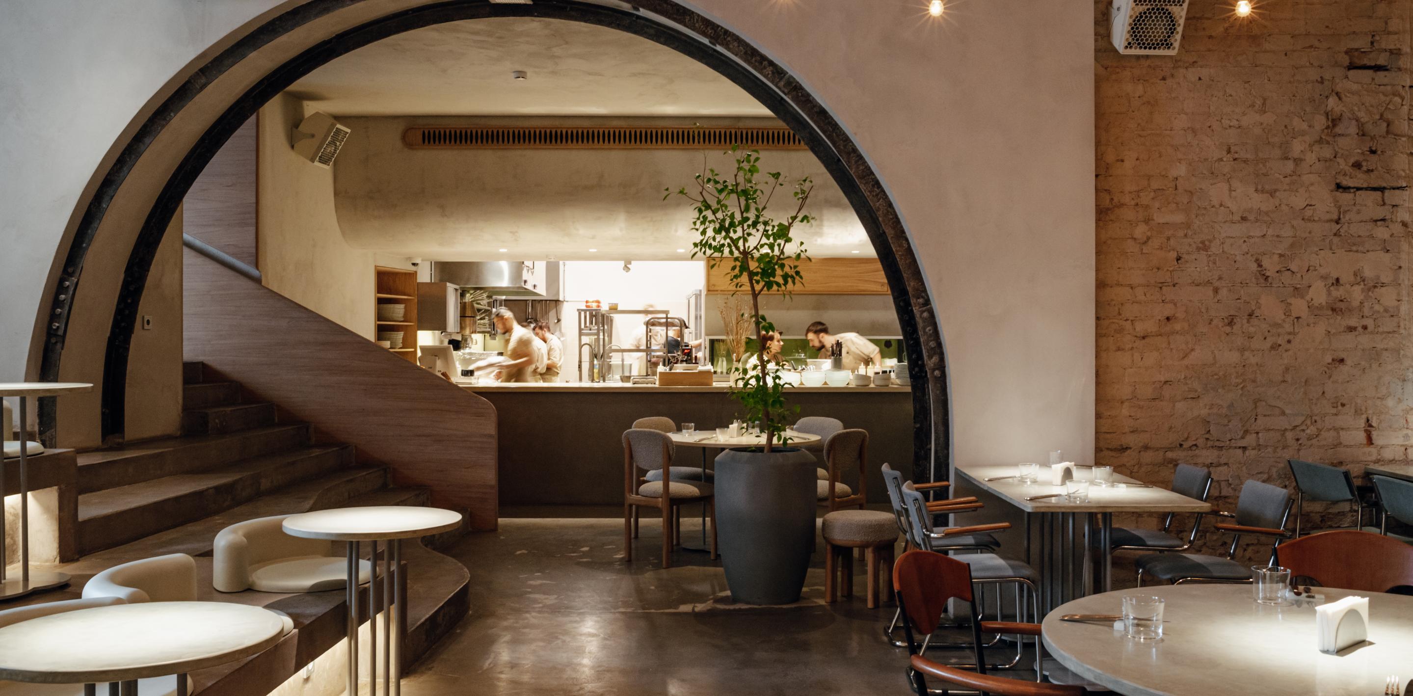 Фантазия на тему гедонизма и рецепта радости от молодых рестораторов в минималистичном пространстве с оригинальными колоннами конца 19 века.