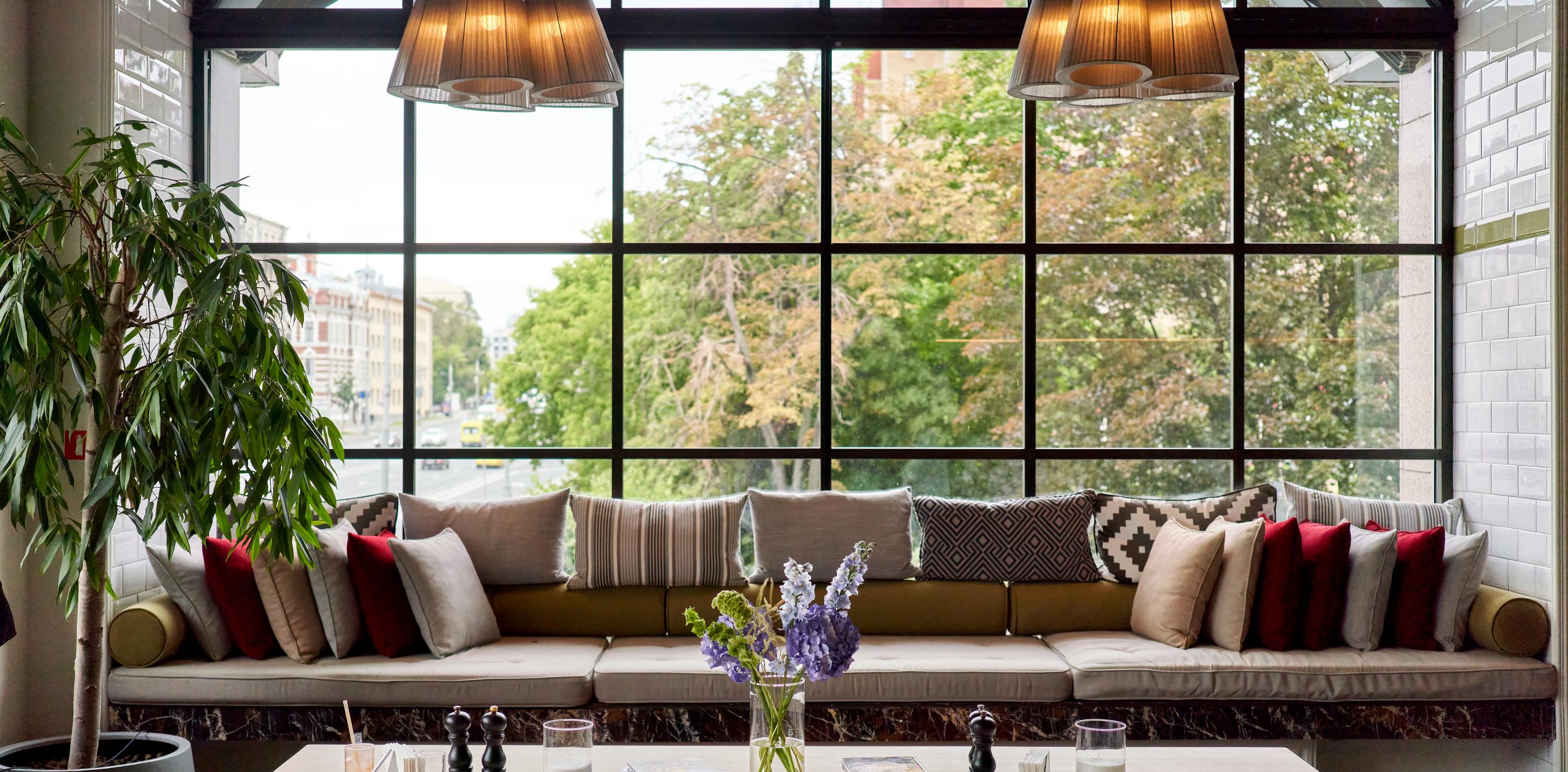Концепция кафе — «Завтрак целый день». Здесь можно провести деловую встречу, прийти с семьей на бранч или просто посидеть с напитком, наблюдая за Полянкой из больших окон кафе.